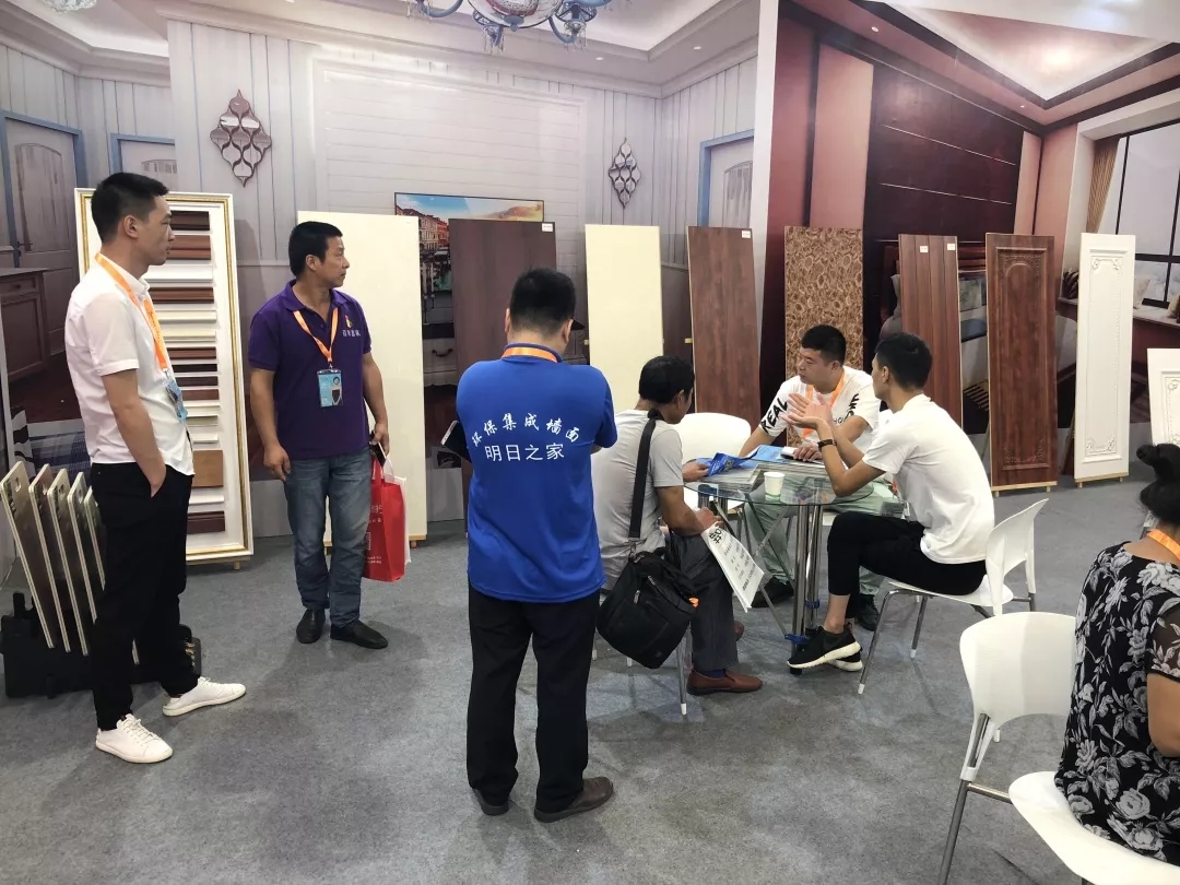 展会现场的工作人员也耐心的为每一位来访客户一一讲解,介绍产品、色卡和安装方式等。