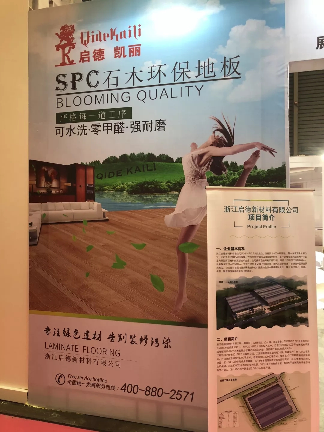 为了让前来参观的客户们可以更加直接细致的观察我们的板材,本次展会提供了三个展示架,这样有顾客进来时可以直观的看到和摸到我们的产品。另外墙角边也摆放了一些产品和资料,这样即便是在参观人数增多时,也可以保证来访人员都可以人手一件产品,彼此不冲突。