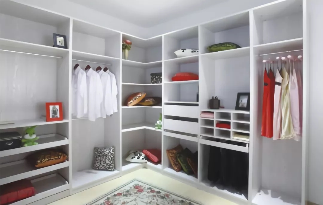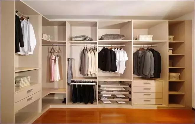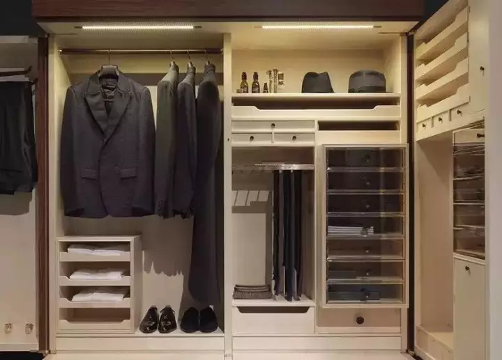 最好能在衣柜设计时就考虑一个大的通体柜,只有上层的挂件