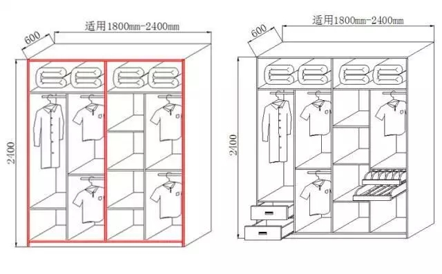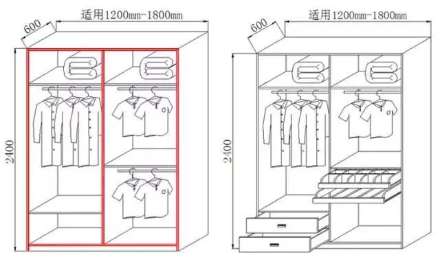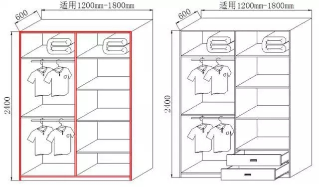 一般将左右两边分别设置成男女方各自的储衣空间