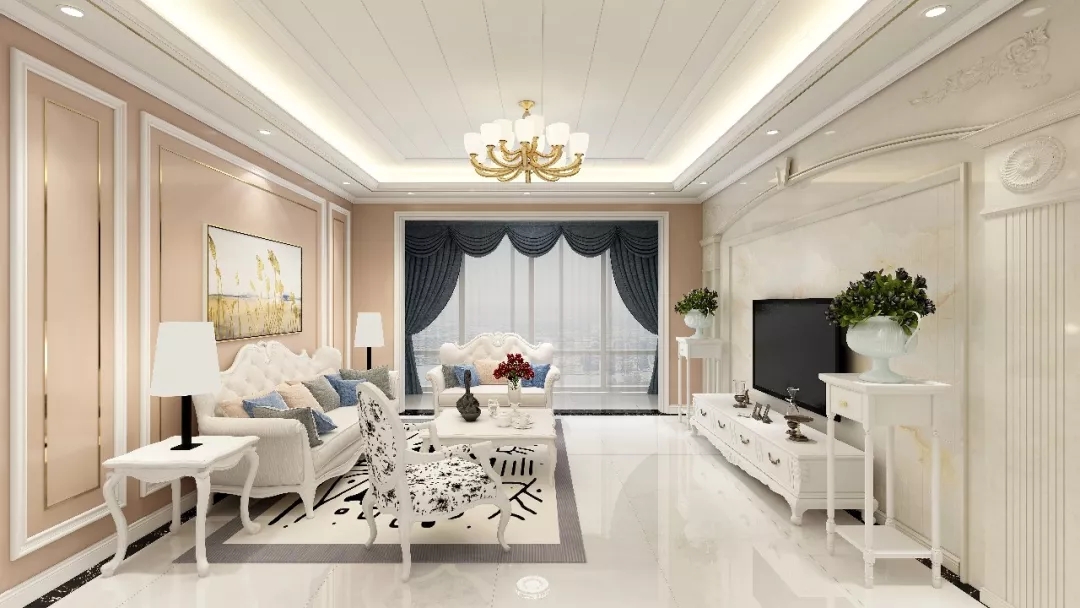 伴随着新生命的到来,家庭成员增加,那么在公共区域活动的时间也会增加。因此,启德凯丽此款客厅面积比较大,活动区域比较广,正好适合三口之家。此外,该客厅采用简欧式的装修风格,清新的吊顶,搭配简洁的沙发家居,年轻时尚。