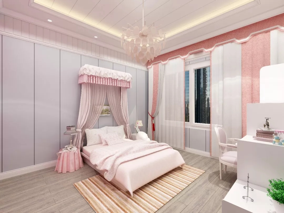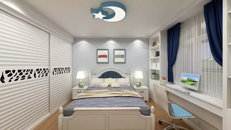 由于孩子的身体正处于发育阶段,抵抗力和免疫力较弱,加上孩子还没有足够的安全防范意识,因而儿童房在装修设计时要注意以孩子的安全健康为前提。孩子有着极强的好奇心和想象力,遇到任何好奇的事物都喜欢去碰触,所以儿童房内最好避免使用镜子、玻璃等材质,防止碰碎使孩子受伤。另外,房间内的家具要避免尖角,或是用东西直接包裹起来,以防孩子摔倒磕破。除了家具,还要注意装修材料的选择,考虑装修材料是否含有甲醛,或者甲醛是否超标,启德凯丽建议儿童房使用天然的材料进行装修。