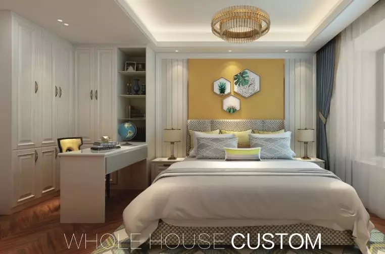 次卧空间可以作为小书房,也可以作为客房。在房间里打造一个多功能柜,可以满足小户型的收纳。