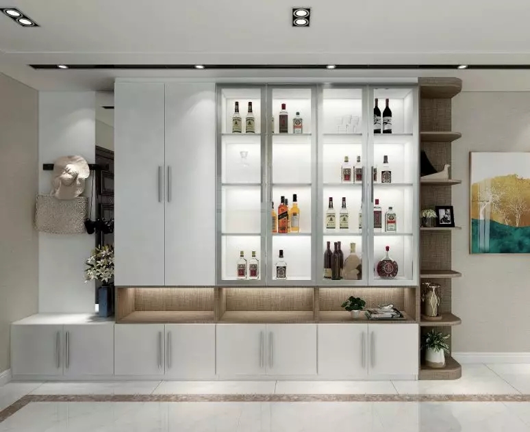 家里没有“酒鬼”,就别装复杂的酒柜了。我家装了个开放式酒柜,入住开始就一直闲置着,灰尘倒是积了不少,每回擦酒柜都让我怀疑人生。选择这款启德凯丽橱柜式的,有玻璃门的就可以安心放酒喽!