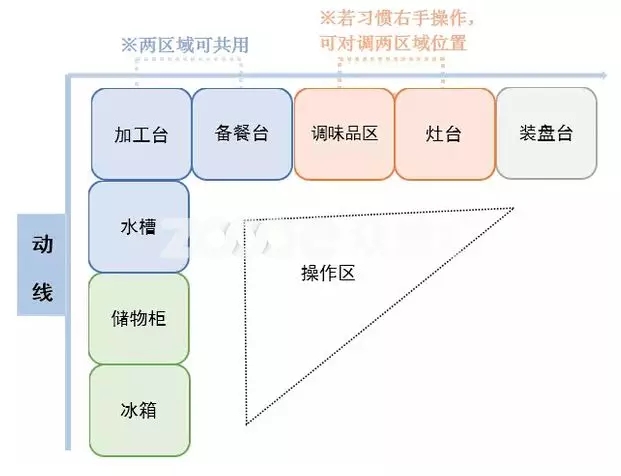 厨房收纳比较重要的点是动线问题,洗菜区→切菜区→烹饪区
