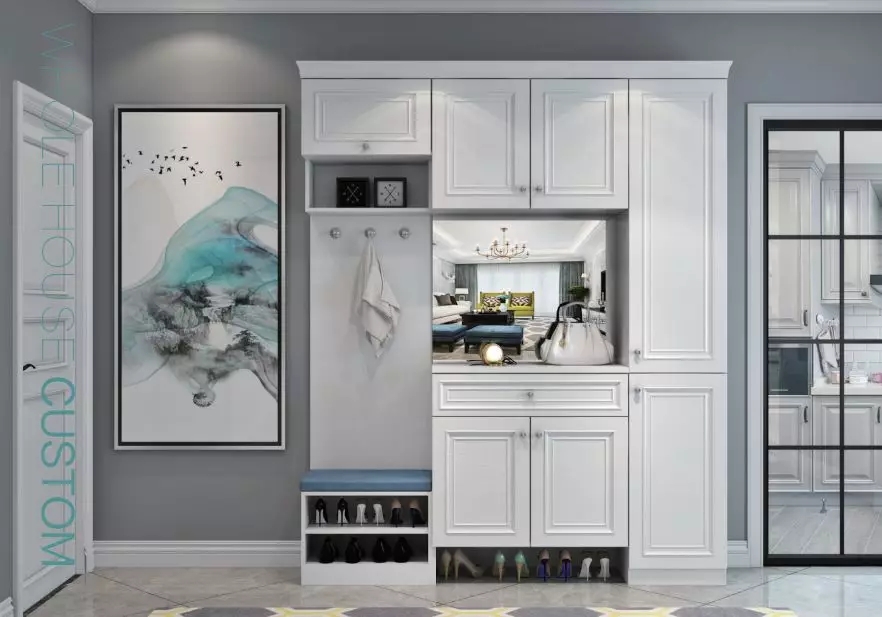 大部分中国家庭其实是没有玄关的,又或者说没有合适的玄关。从收纳角度上说,印象中的玄关是进门后更衣、换鞋、放伞、搁包等集纳地,也是家里主人出门时整理衣装、准备小件携带物品的空间。因在设计收纳空间时,要考虑到每种物品的不同收纳方式。
