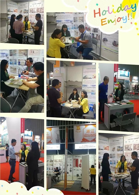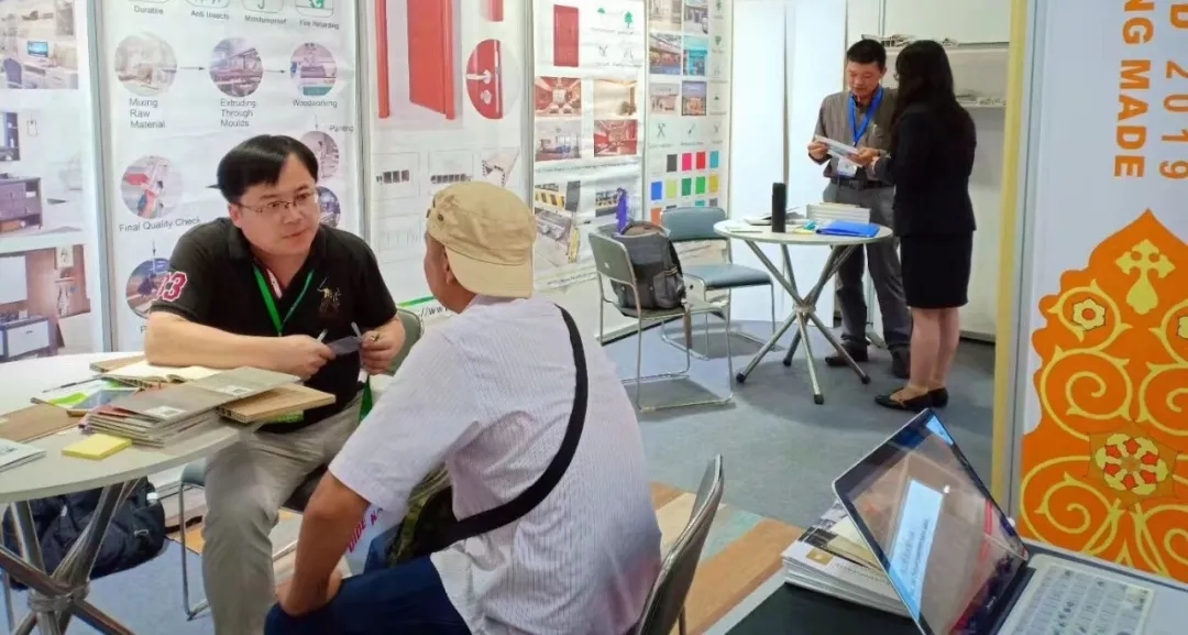 越南展经过八年坚守,有效提高了当地终端市场的份额,深度融入越南百姓衣、食、住、行、娱生活的方方面面。今年启德新材将“新型环保”竹木纤维墙板、衣柜板材、防水木门及SPC石塑地板作为主推产品。因为防水防火防潮,造型多变,健康环保等特性,受到越南采购商的欢迎。
