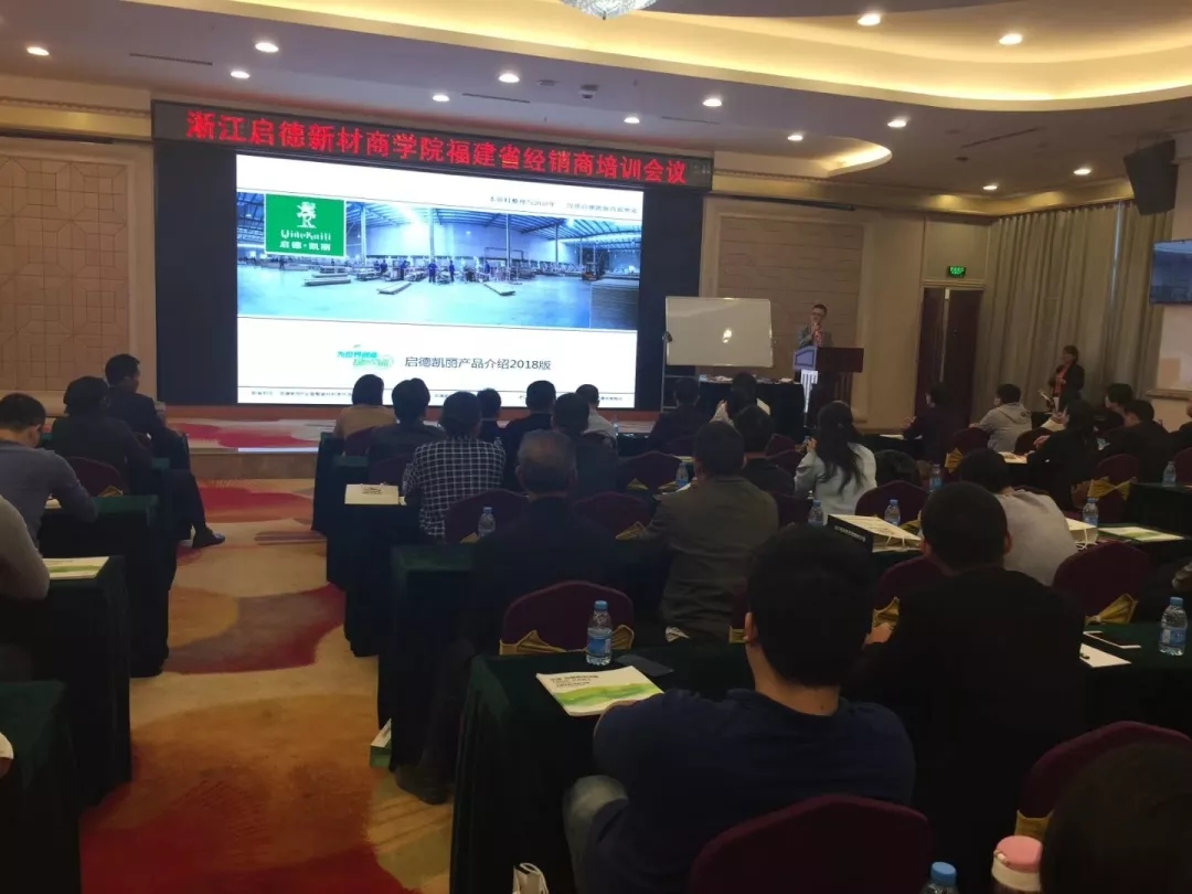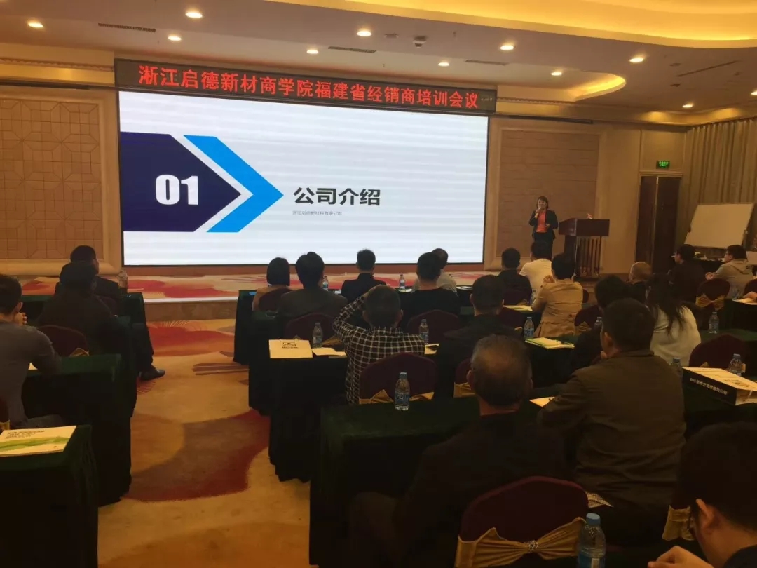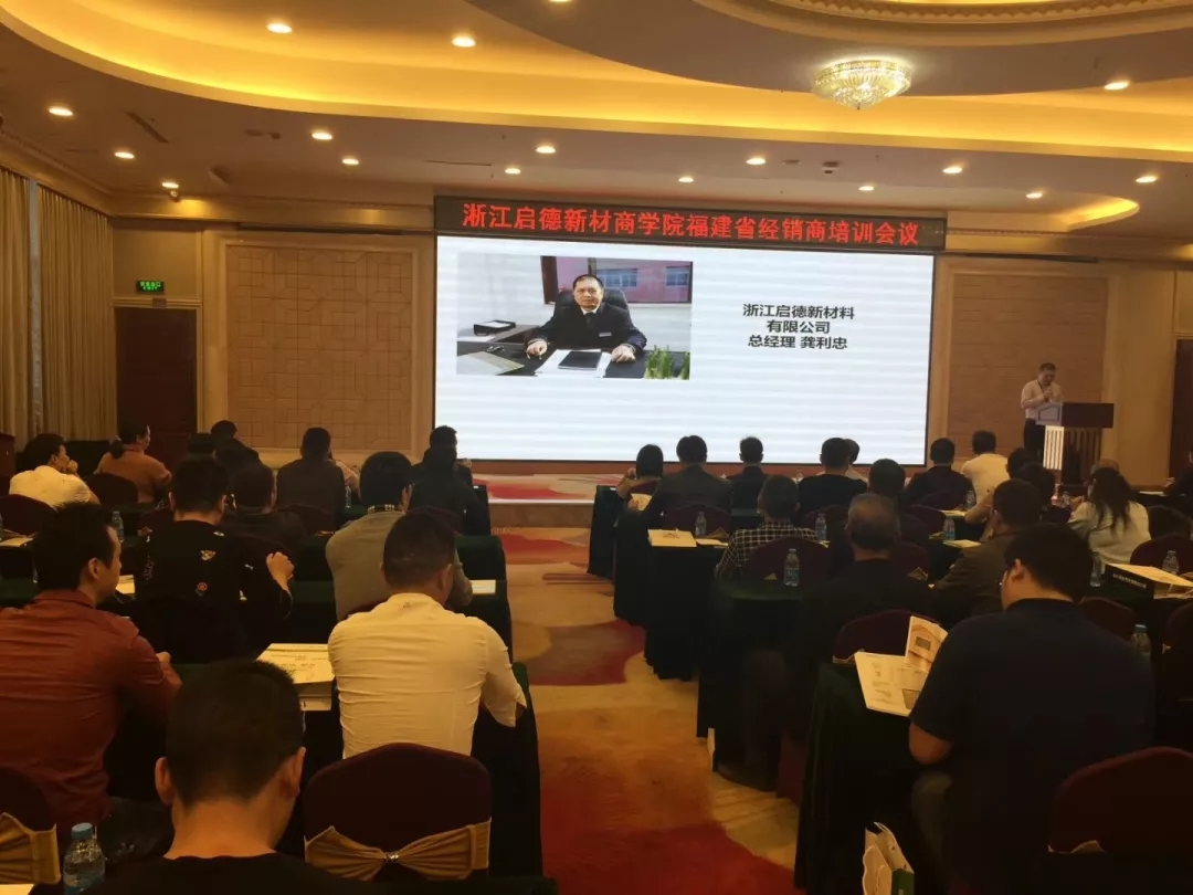 会上,浙江启德新材料有限公司总经理龚利忠先生首先致辞欢迎各位经销商来到美丽的福建——泉州,与启德共商发展大计。他主要强调启德非常重视与经销商之间的合作共赢,希望借此会议为双方搭建更好的沟通平台,为了给各位经销商提供系统化、专业化的培训服务。共同实现跨越式的发展。