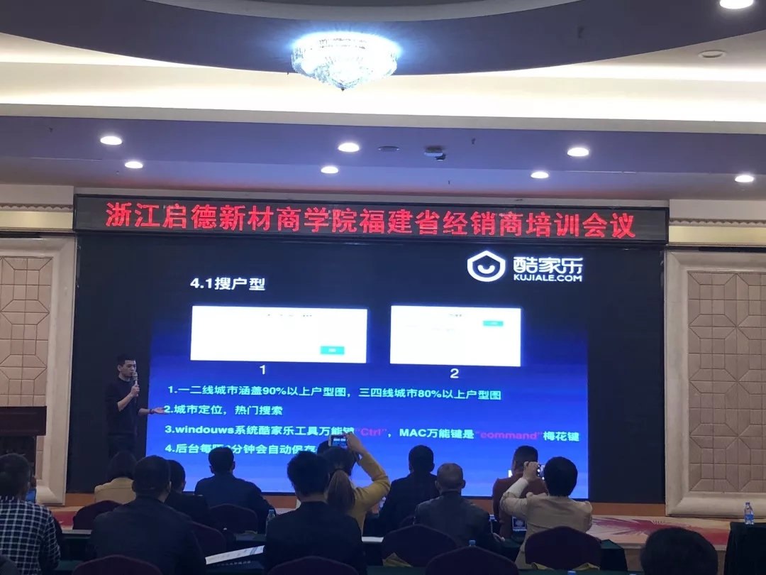 课程期间营销部总监来晓华女士介绍了公司的企业文化和清晰的产品理念。向在座的经销商们分析了行业发展面临的机遇与挑战,并指出集成墙面将是行业发展的新趋势。也为每一位启德人指明了前行的方向,并明确了启德作为集成墙面开创者所肩负的责任和义务。同时还分享了多种推广方式,并详细介绍了未来启德品牌的整体营销策略以及营销政策解读,赢得了在座经销商阵阵的热烈掌声。