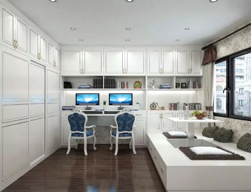 书房改造增加了榻榻米和书柜,预留插座位置,便于多人同时使用书房办公学习,榻榻米设计添加了多样化的功能。学习娱乐两不误。