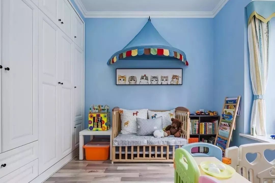 男孩子的房间通常是浅绿或者浅蓝;女孩子的房间则更多地采用浅粉和米黄色调。