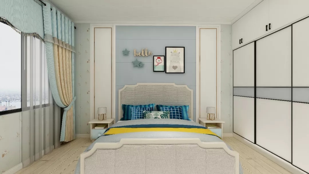 在设计儿童房间时,要考虑到儿童活泼好动的天性,需要确保孩子房间要预留一块活动空间,方便孩子在家玩耍,同时也便于孩子在自己房间接待同学、小朋友来访和一起娱乐。