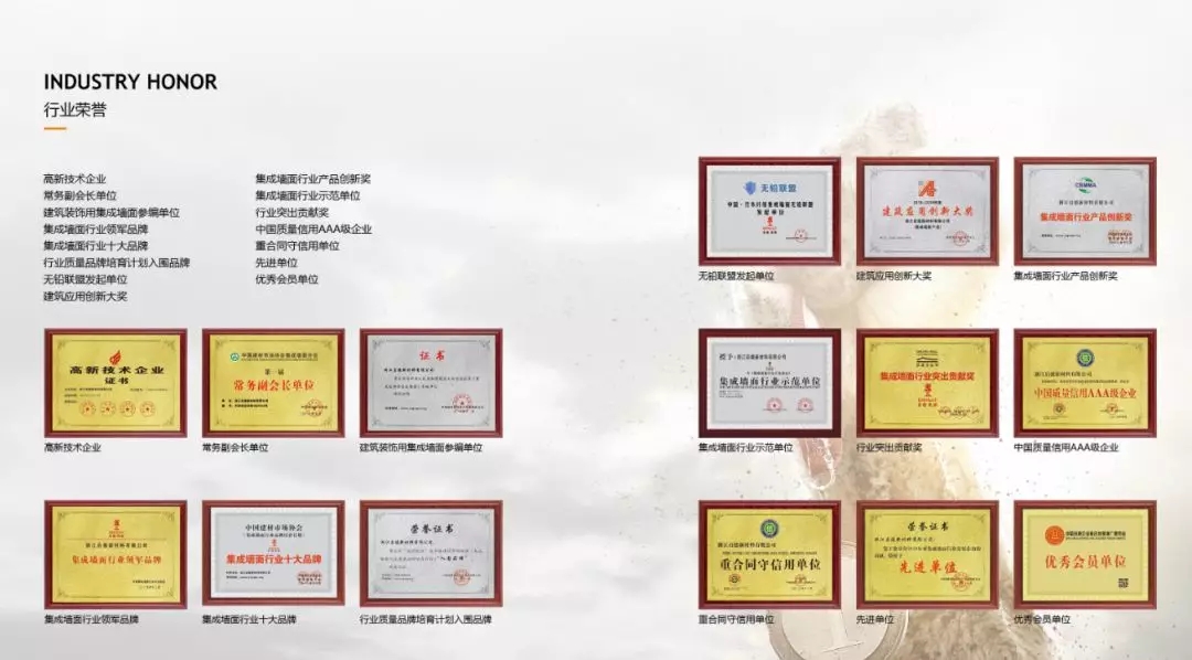 如果您对装修一窍不通,那么一家材料公司所获得的荣誉资质及奖项无疑是辨别其优劣最直观的标准。特别值得提醒的是,大家需要注意辨别奖项的颁发机构及其含金量,以防某些狡猾的公司“鱼目混珠”。