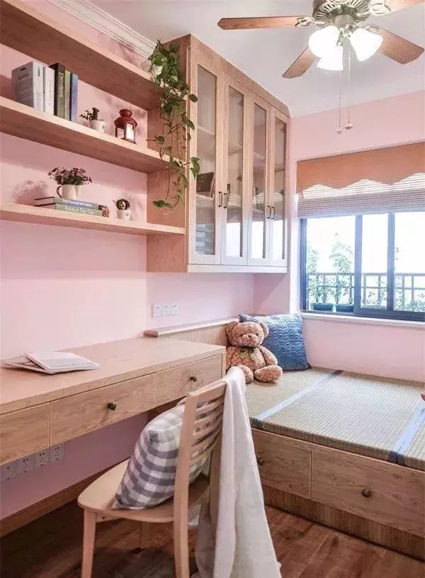 像这种将【榻榻米床+衣柜+书架】结合在一起的设计方式,既能提供大量的储物空间,又能创造个性与休闲的家居氛围,美观实用两不误!