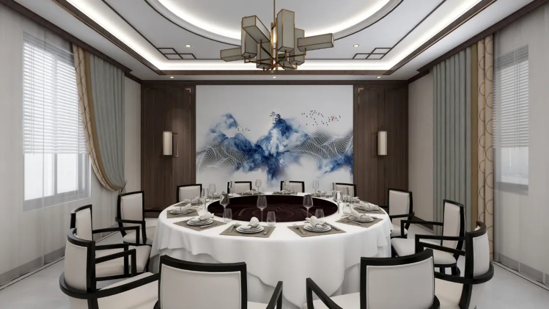 餐厅中的背景墙与客厅中的蓝色山水背景墙相呼应,在整个餐厅里独树一帜,显得清新雅致。在这样的环境下,妈妈做好一顿丰富的大餐,回家吃饭简直是享受哦~