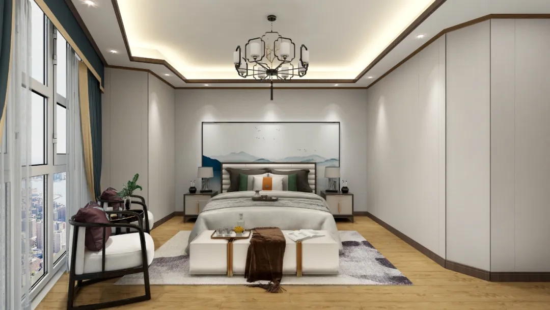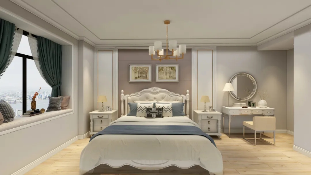 卧室作为客餐厅的色系延伸,卧室是父母与你相互独立的空间,不同的装修风格为不同的空间定了基调,使得整个空间在色彩上显得醇厚雅致。