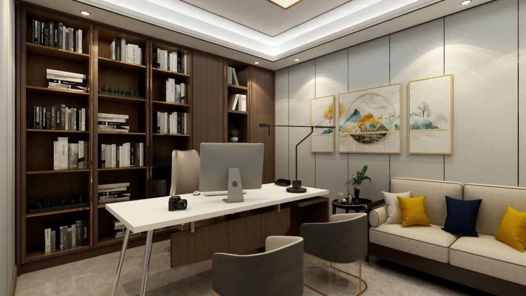 书房还是以新中式为主基调,没有明亮的色彩羁绊,素净优雅,使空间营造出素雅恬静的视觉感受。在这里,你可以独享时光,更可以与父母进行更多的沟通~