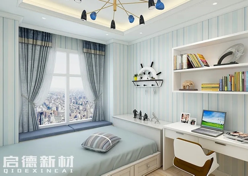 ①褪去低龄化设计,将彩色墙纸、墙贴换成孩子感兴趣的东西,整个房间的设计要以简约实用为主;