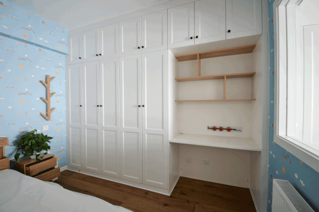 储存值Max的衣柜可以收纳下超多衣物与生活用品,书桌置物架可摆满各种书本与儿童读物,非常实用。