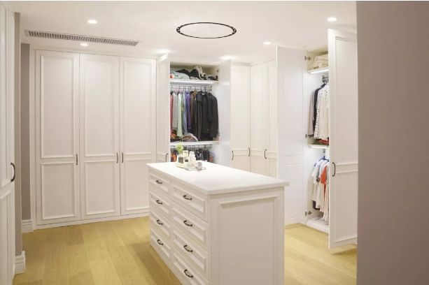1.由于走入式衣柜不设柜门,防尘效果会比较差,所以建议可以用布帘进行遮挡;
