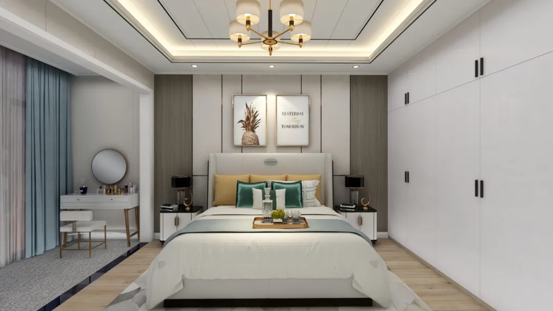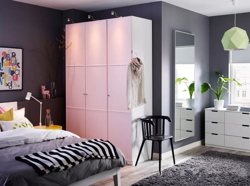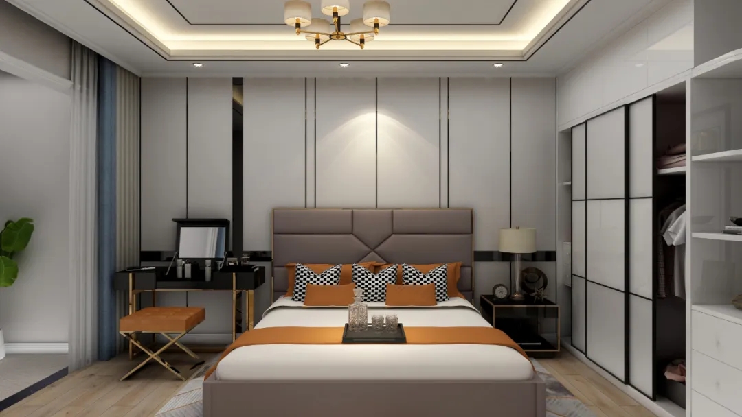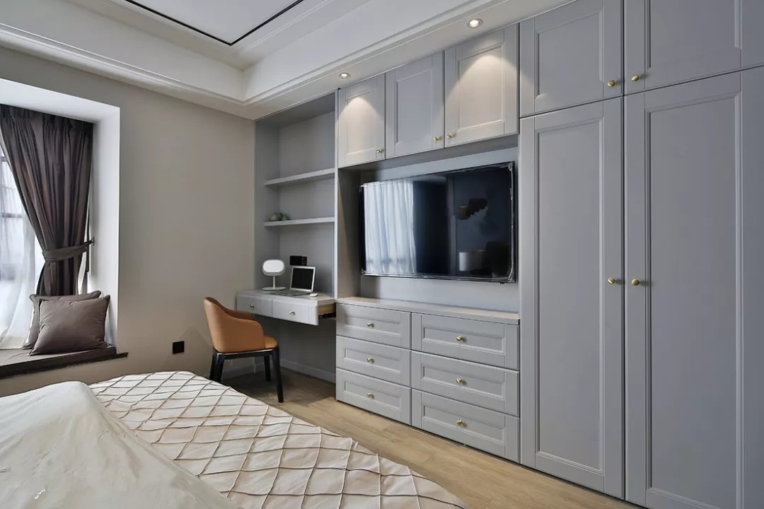 避免选择百叶门之类容易进尘的衣柜门,现在衣柜选择多样,可以根据室内风格搭配不同的柜门,也能制造出其不意的视觉焦点。另外,选择推拉门还可以减少开门带来的阻碍。