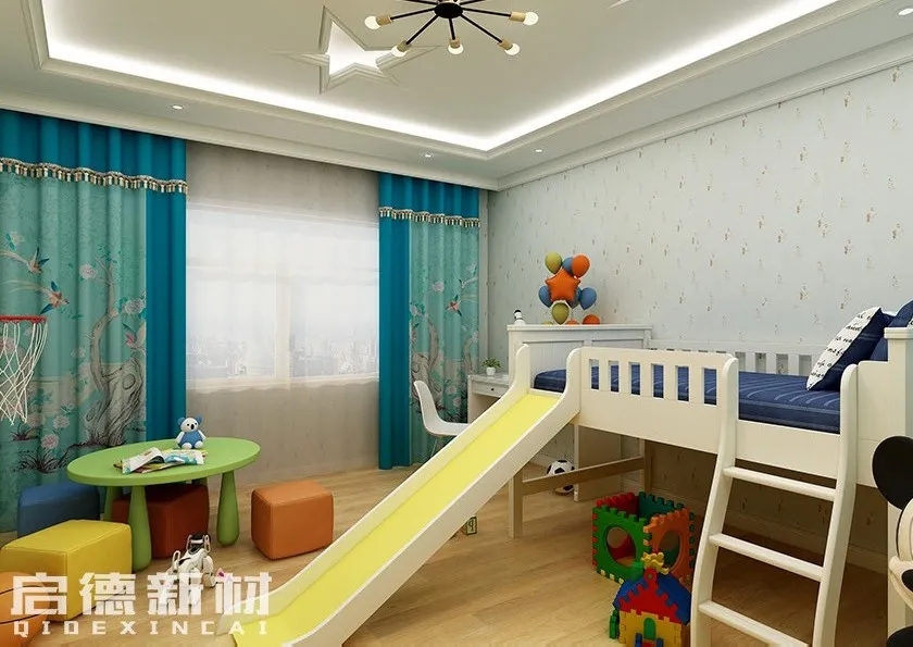 装修儿童房时,要采用绿色环保材料,选择一些天然的材料,特别是防水涂料、胶粘剂、油漆溶剂(稀料)、腻子粉等。