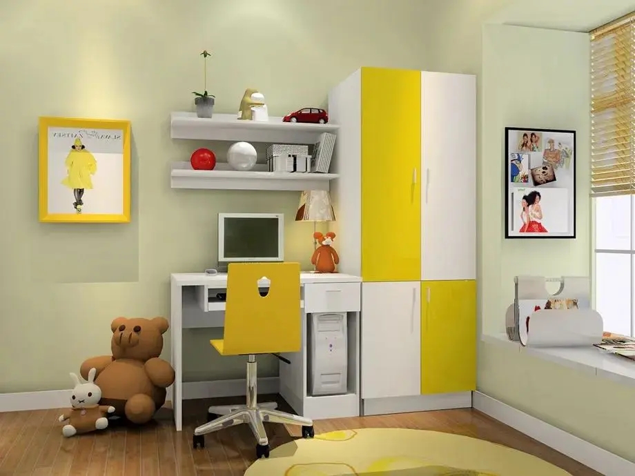 孩子们心里的世界是五彩缤纷的,他们总是喜欢色彩绚丽的东西,因此大家在装修儿童房时应选用亮色调,不过颜色不宜过多,3个颜色为好。男孩子不妨可以考虑蓝色、黄色。女孩子不妨可以选择粉色,粉蓝色,绿色都是不错的。