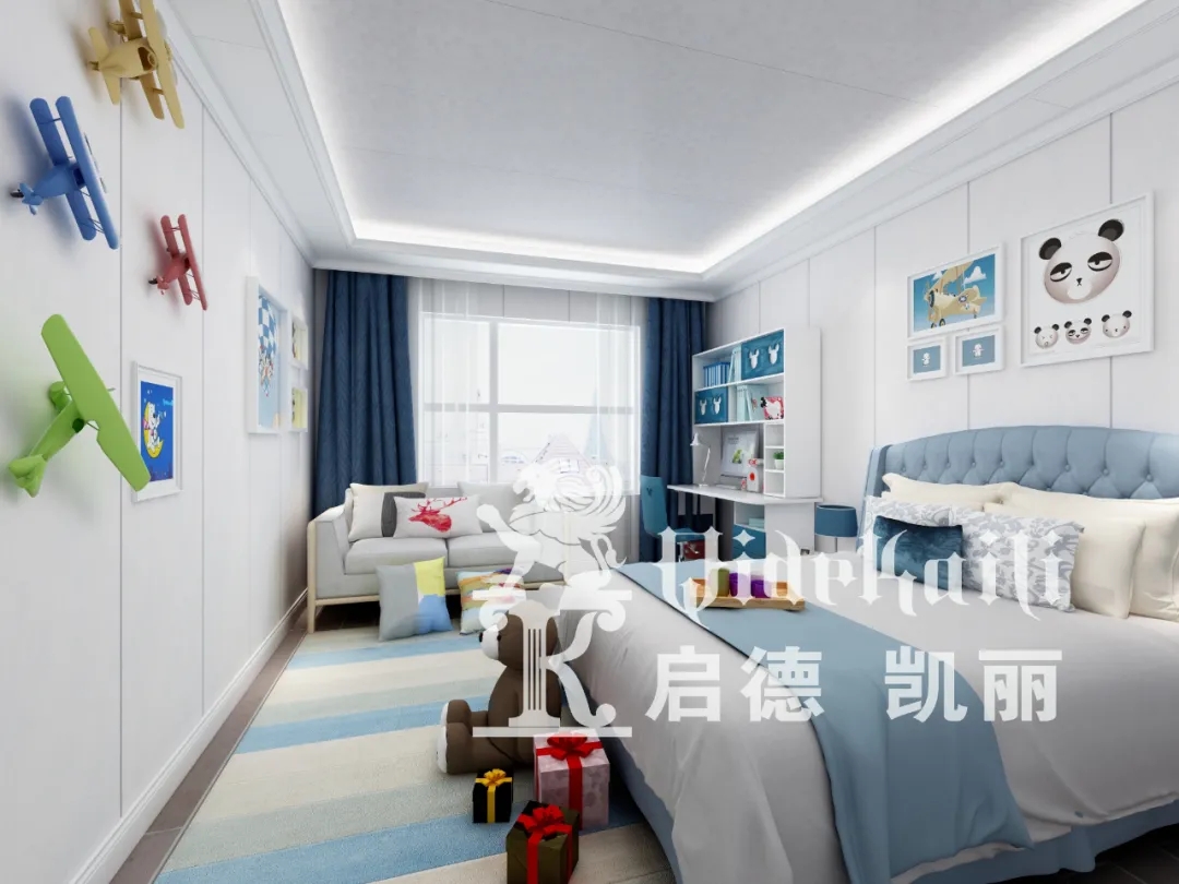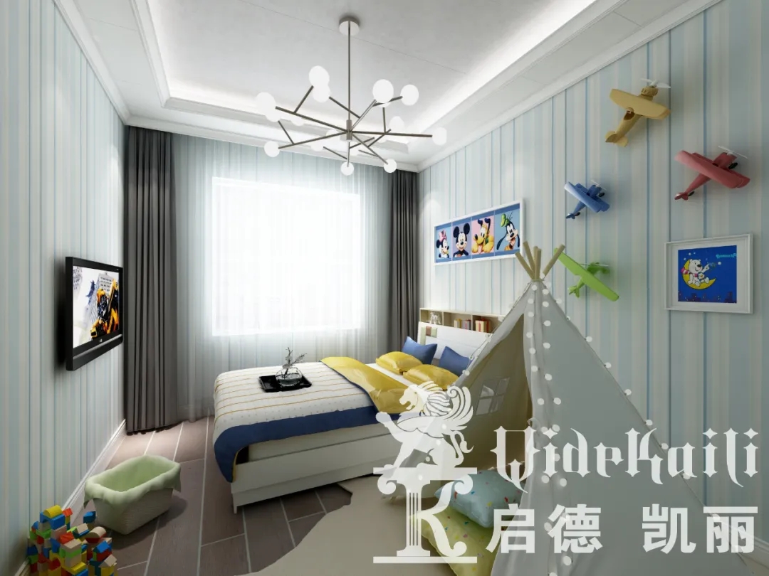 儿童房装修要注意儿童卧室的床品质量,最好选择纯棉材质的,柔软舒适,适合保护儿童娇嫩的面部和身体肌肤。