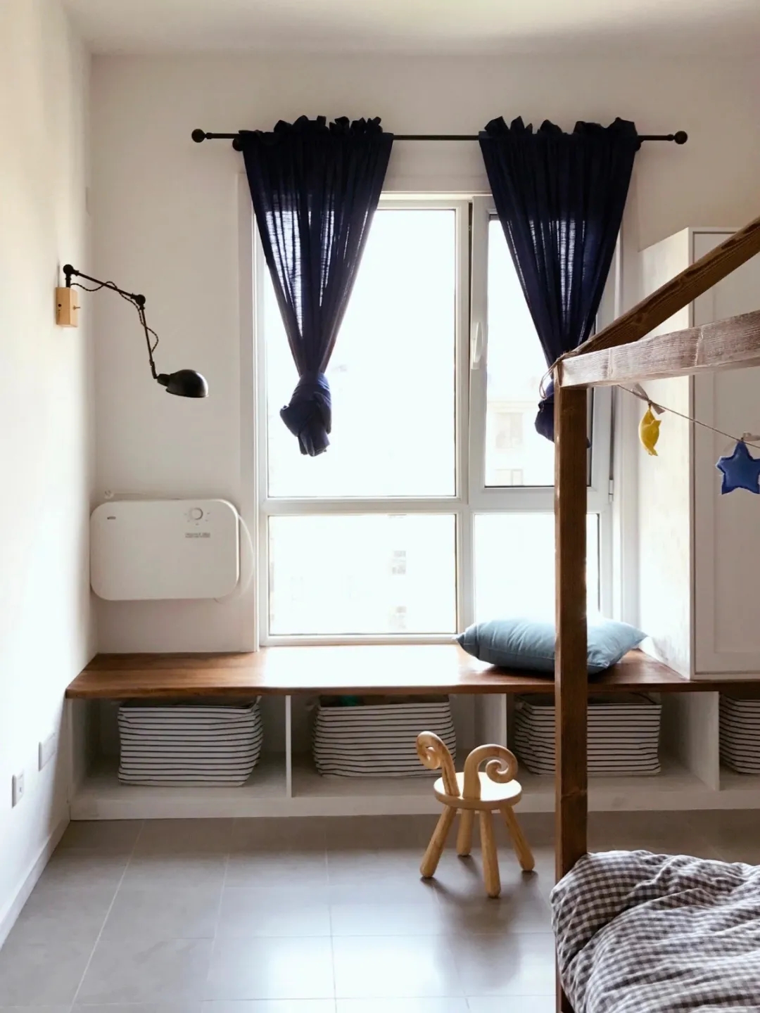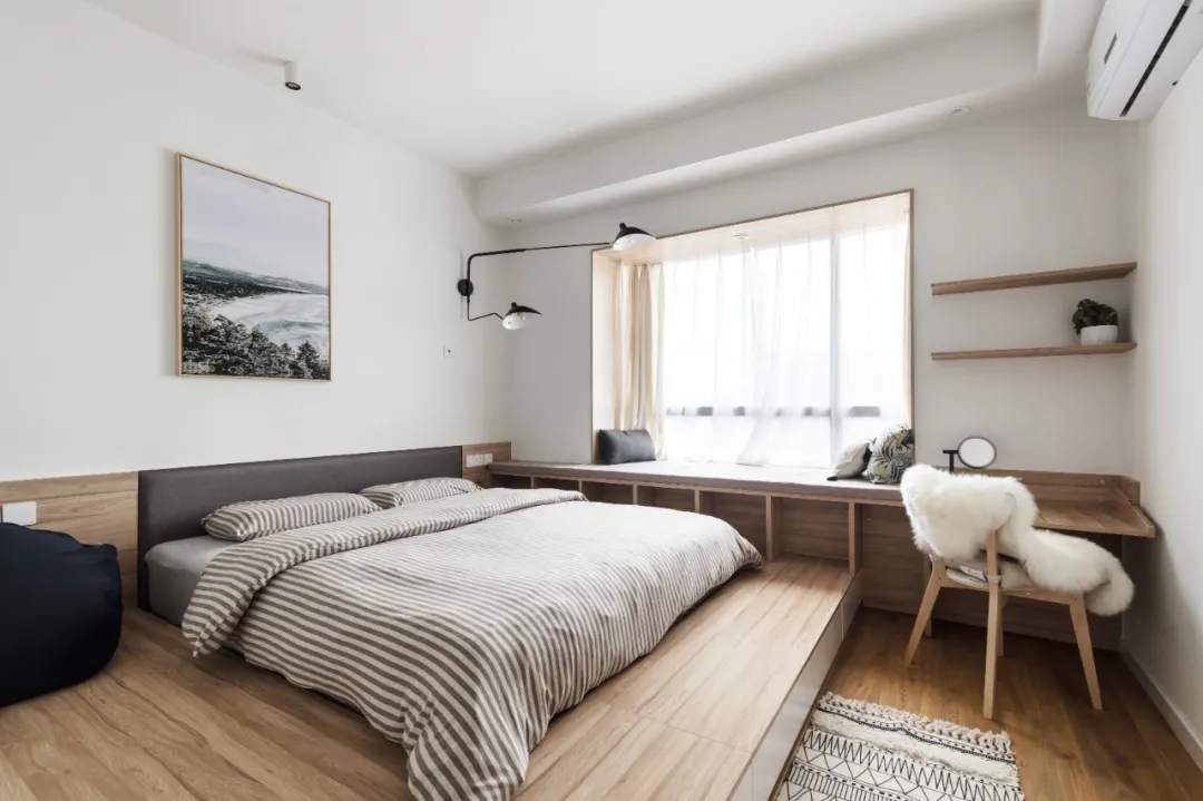 ▲飘窗上加一层抽屉,加高了飘窗后,还能把飘窗设计成梳妆台或者书桌,让小卧室也更加实用情趣。