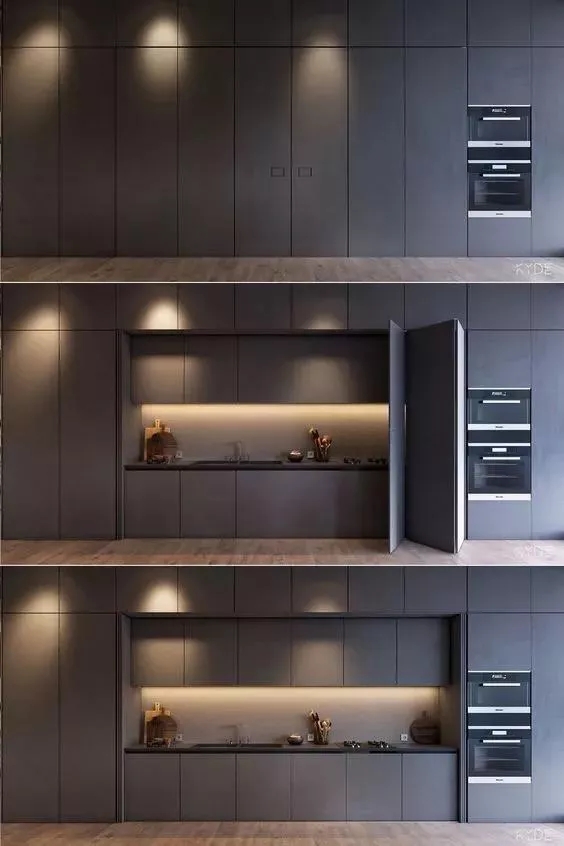 4)为了空间更干净整体,隐藏操作间,如常凌乱的厨房等。