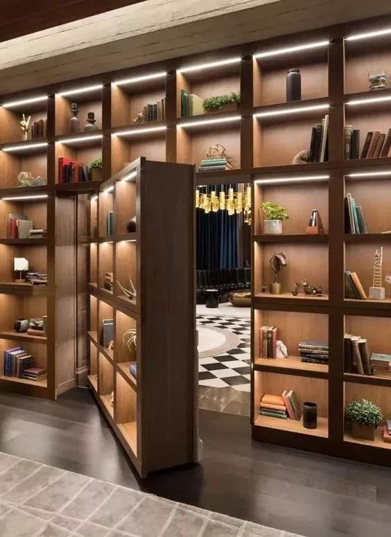 4)旋转式隐形门:需要占用一定空间,且大部分是采用柜体的形式。因为要承重,对五金件的承重能力要求非常高。