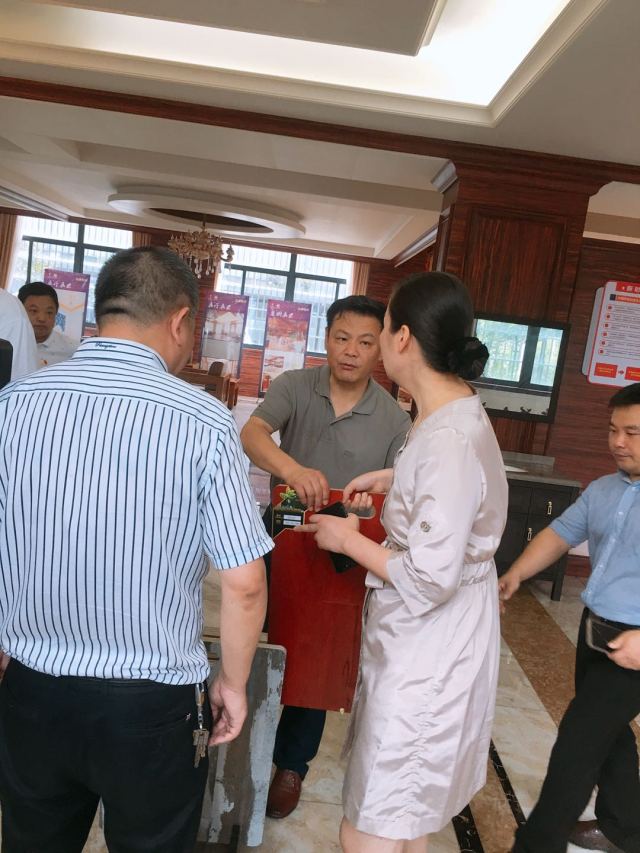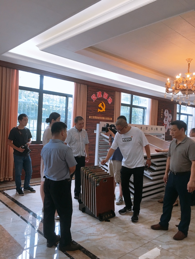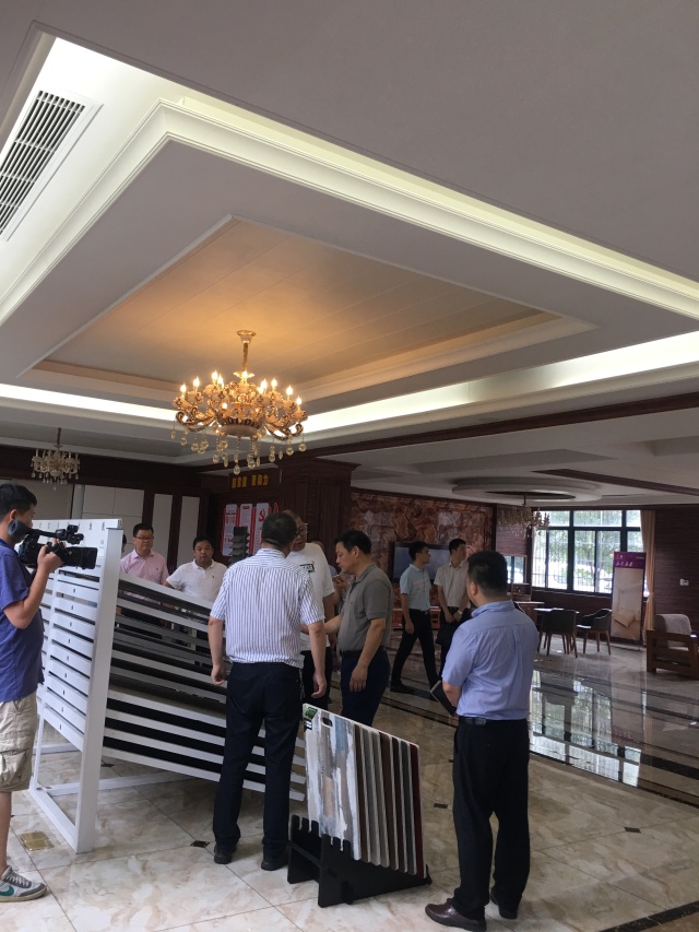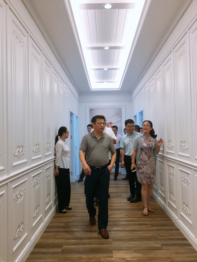 视察中,赵书记、陈县长一行人认真听取了公司领导对目前公司发展以及二期工程建设情况的汇报,对我公司取得的成绩给予充分的肯定。领导们在总经理的引领下参观了展示厅,多种风格的展示厅吸引了在场领导的目光,当听到总经理介绍说富丽堂皇的办公区都是由启德自己生产的材料装修的,而且装修时间快速,风格类型多样,领导们纷纷表示赞赏,鼓励启德创新更多的装修饰材。