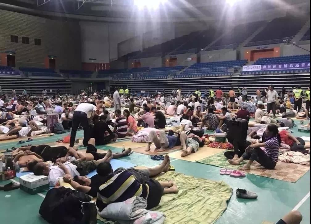 ▲9月16日,广州市南沙体育馆内,千余名农民工临时避难。 图片来源:新京报